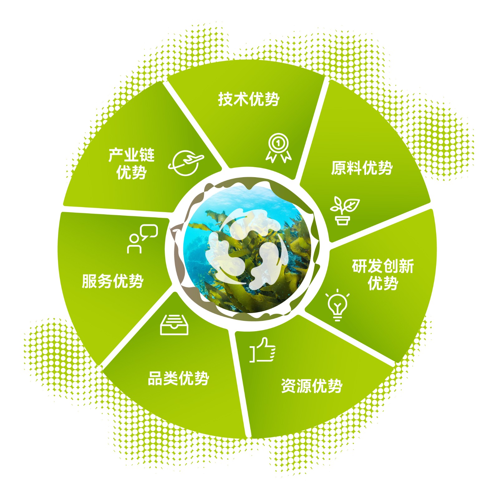 拥有多学科融合的科技创新团队和中国农科院科技成果孵化基地、山东省海藻生物酶应用工程技术协同创新中心、山东省企业技术中心、山东省海藻生物酶工程技术研究中心、海南海藻应用研究中心“1基地5中心”的科技创新平台。与中国农业科学院、江南大学等6处高校院所结成联合创新体,探索海洋生物前沿技术,共同开发海带资源的高值化利用。已开发了鲜海带超细破碎技术、鲜海带高效低温酶解技术、海带天然活尔蒙活体贮存技术、全价营养活性螯合技术四大技术;开发了高活性海带全价营养原浆、原粉,并获得了21项国家授权专利、1项美国授权专利。