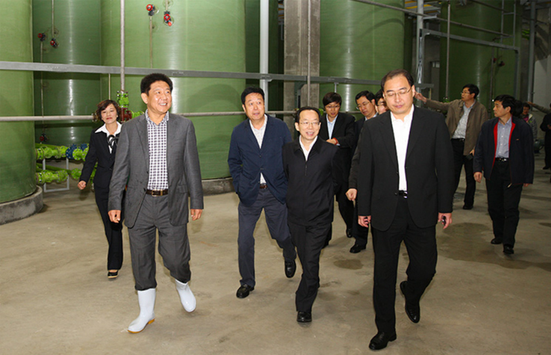 2014年5月国家农业部副部长曾一春同志、好运角旅游度假区常委张宏璞书记来公司视察工作,在公司董事长李建的带领下,参观了海藻肥生产车间,两位领导对车间的建设工作表示满意。