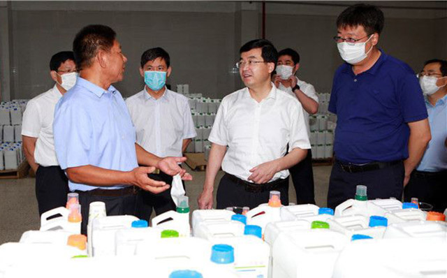 2014年5月,国家中组部领导、巡视组来司视察工作,董事长李健详细讲解海藻肥生产过程、自主创新设备、生产原料选择等内容。